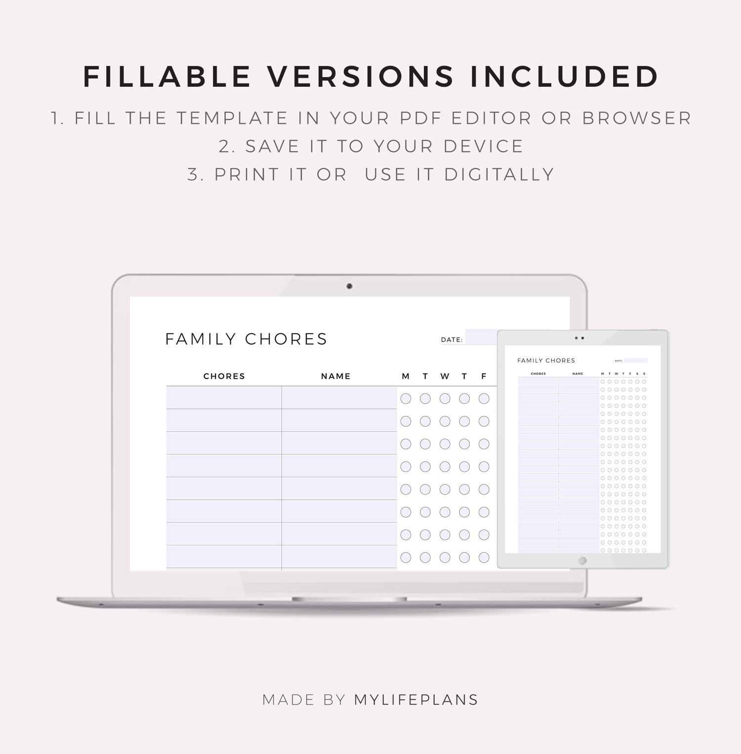 Simple Weekly Family Chores Planner, Printable & Fillable, A4/Letter Size
