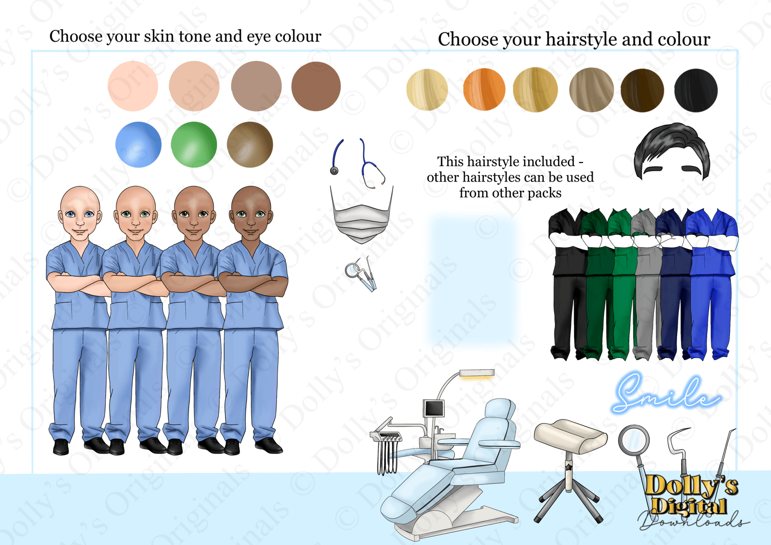 Instant digital download of our Male Dentist Men’s Character Bundle PNG (35 PNG’s)
