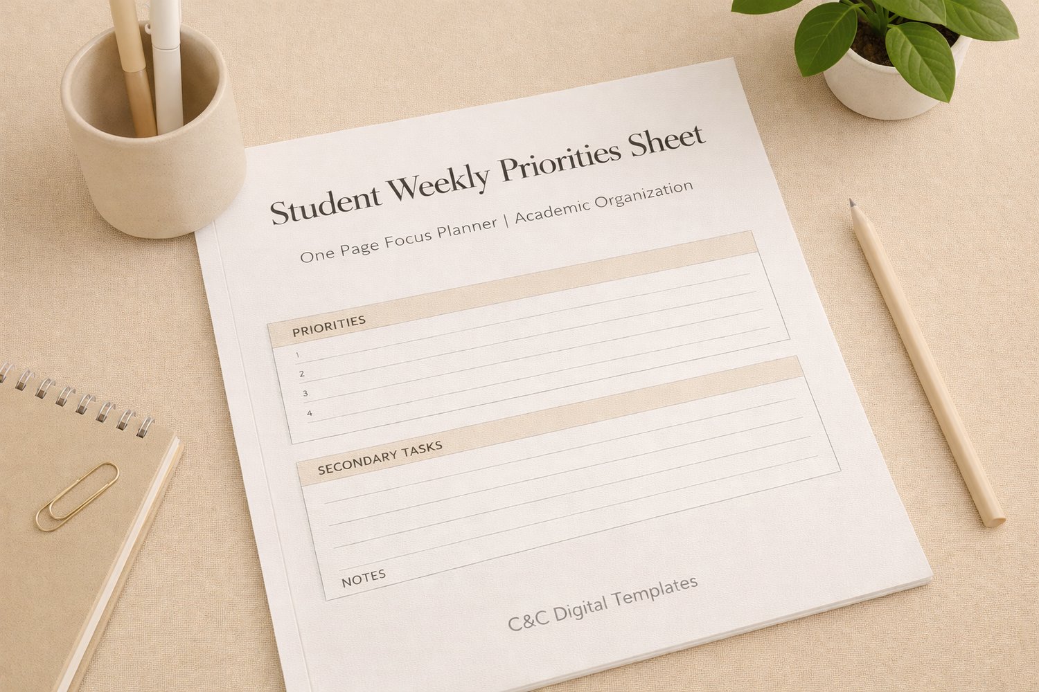 Student Weekly Priorities Sheet – One Page Focus Planner | Academic Organization