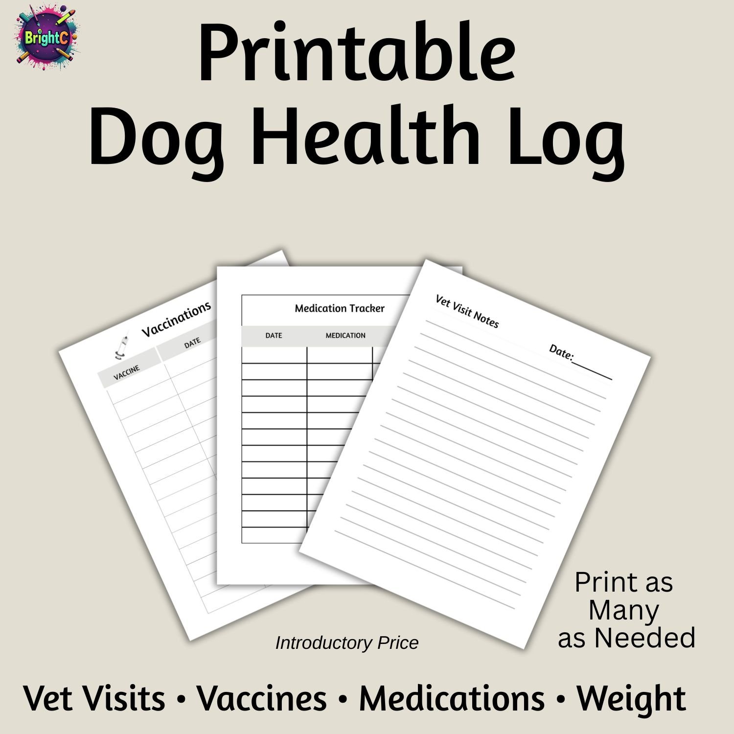 Printable Dog Health Log – 6-Page Medical & Care Tracker (Instant Download)