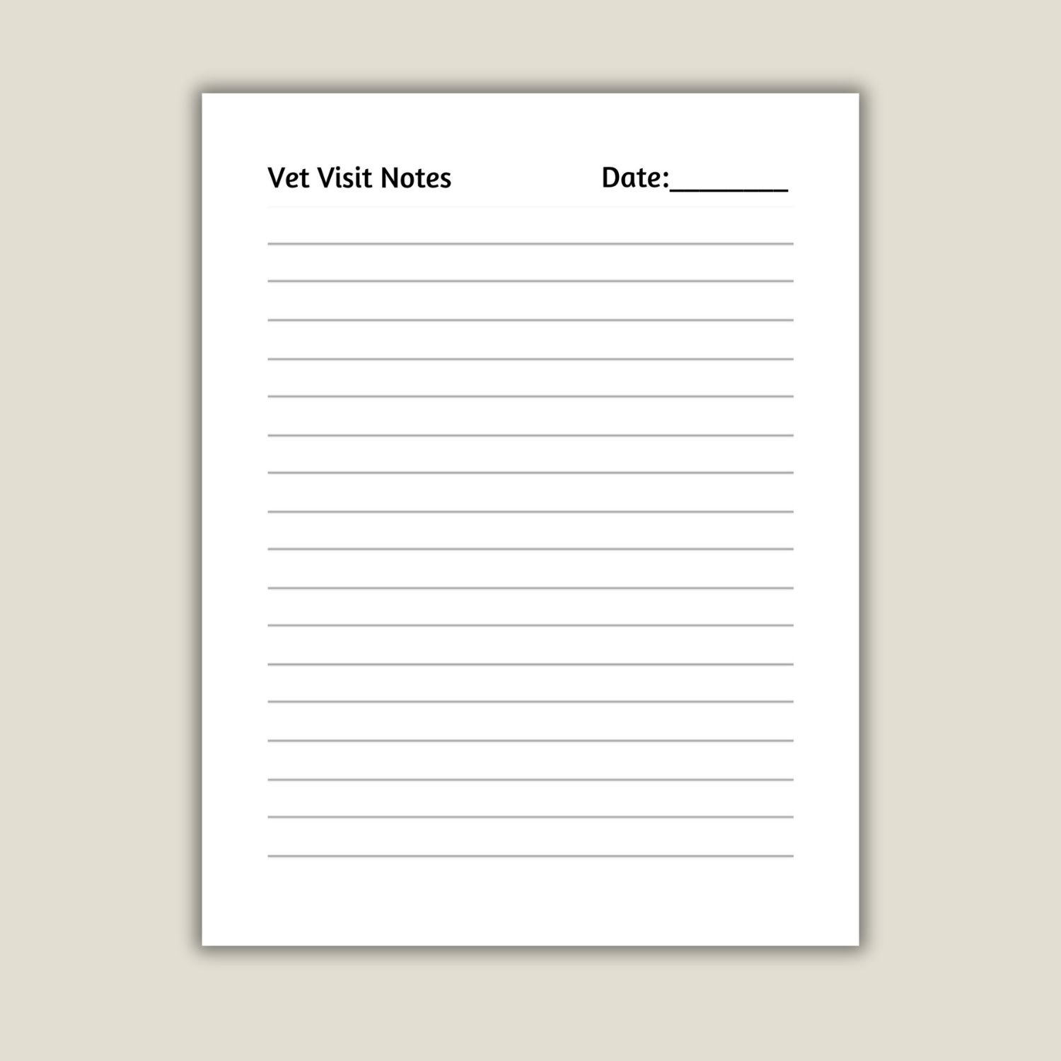 - Vet Visit Notes – record appointments, diagnoses, and follow-ups