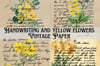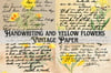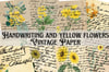 Handwriting, and yellow flowers Vintage Paper, Handwriting and yellow flowers Digital Paper, Handwriting, wildflowers Vintage Paper, Handwriting, and Floral Background.
