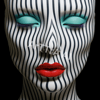 A face of a woman adorned with bold black and white stripes. This extraordinary artwork seamlessly merges the classic elegance of portraiture with a contemporary play of contrasting patterns.