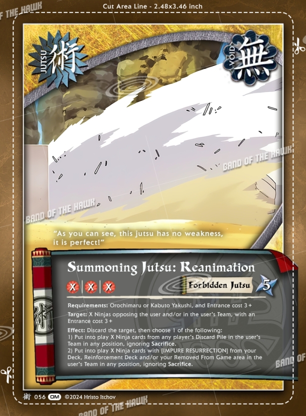 j056 - Summoning Jutsu Reanimation Forbidden Jutsu card from our Obito & Madara card set for Naruto CCG.