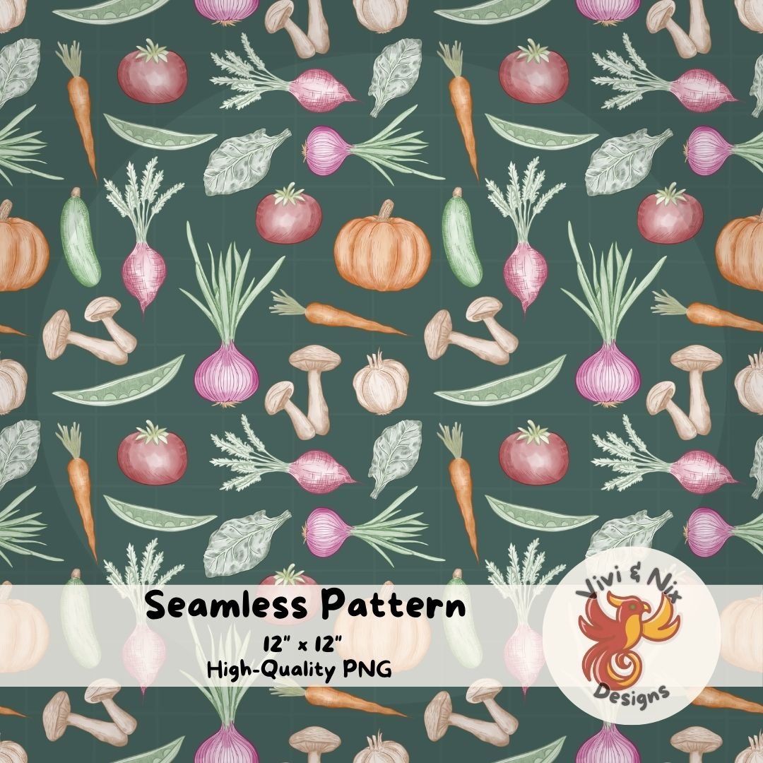 Kitchen Garden Seamless Pattern Vintage Vegetable Digital Paper Hand Drawn PNG for Fabric Sublimation and Farmhouse Crafts