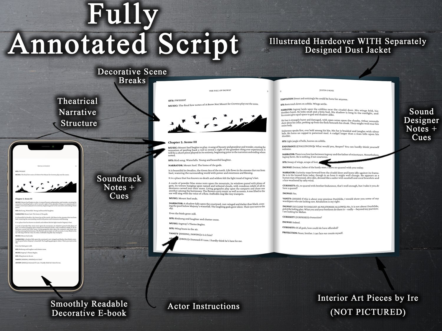 A Special Edition Hardcover version of the script for "The Fall of Ingway" with artwork by John Molinero and Ire Ethereal.