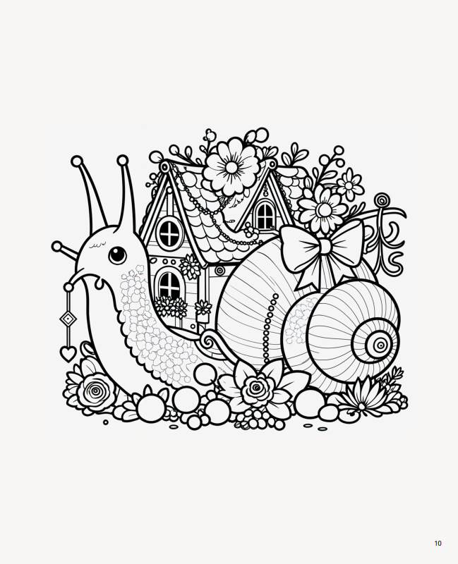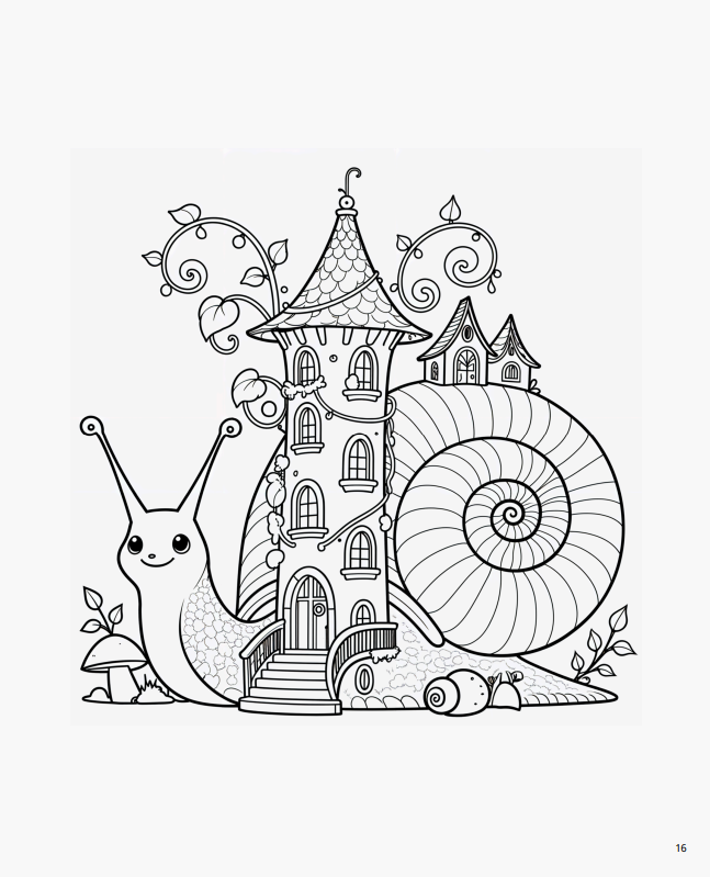 Розмальовка «Равлики-будиночки» — це ніжна, затишна казка для найменших. На 21 сторінці діти познайомляться з милими равликами, які живуть у своїх чарівних мушлях-будиночках. Кожен малюнок — це нова історія: равлик готує чай, читає книжку, доглядає садочок або вирушає у мандрівку.