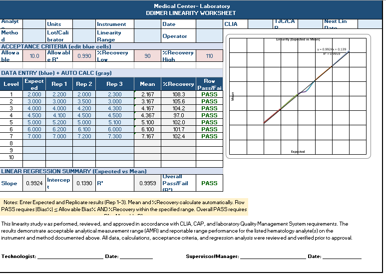 Medical Laboratory Linearity & Reportable Range Validation Worksheet