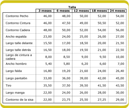 Patrones base infantiles de falda, cuerpo y pantalón, de las tallas 3 a 24 meses.