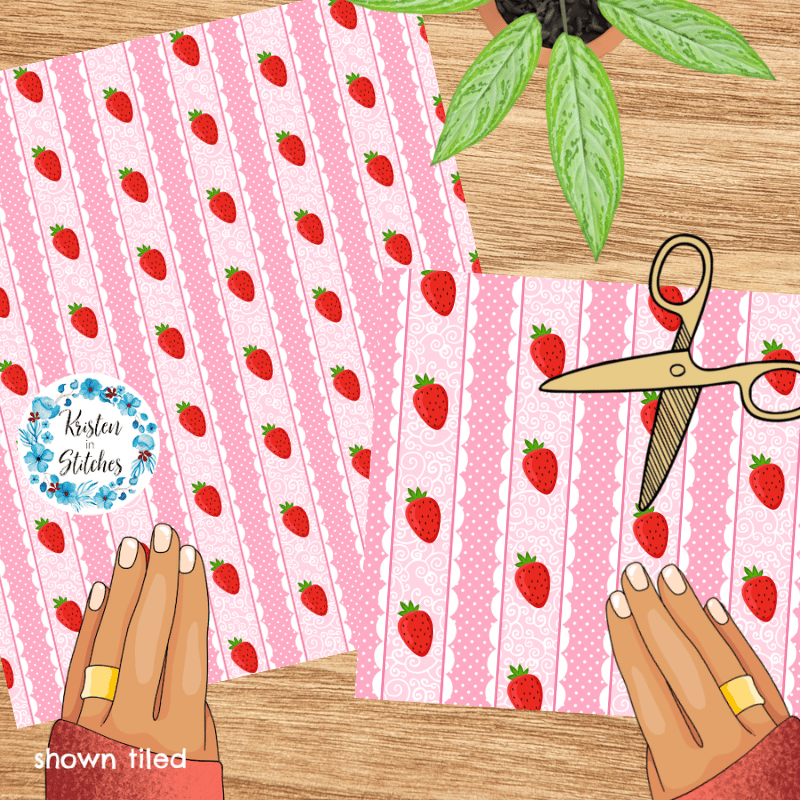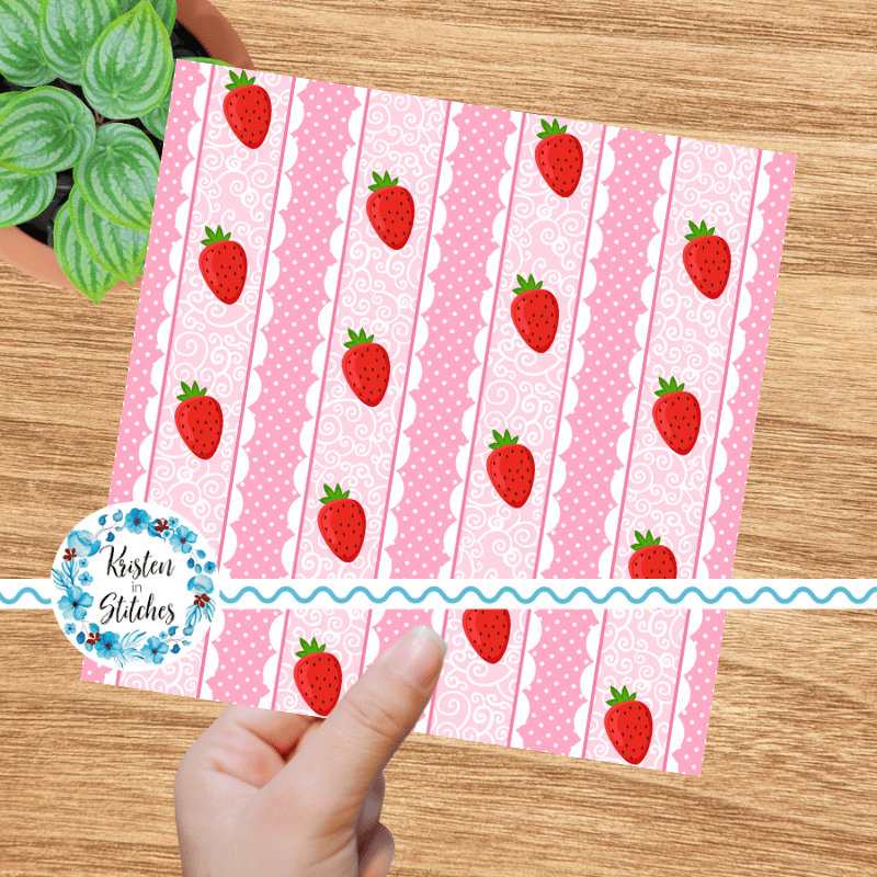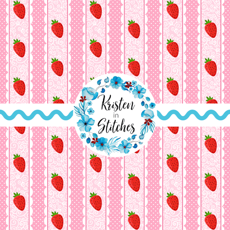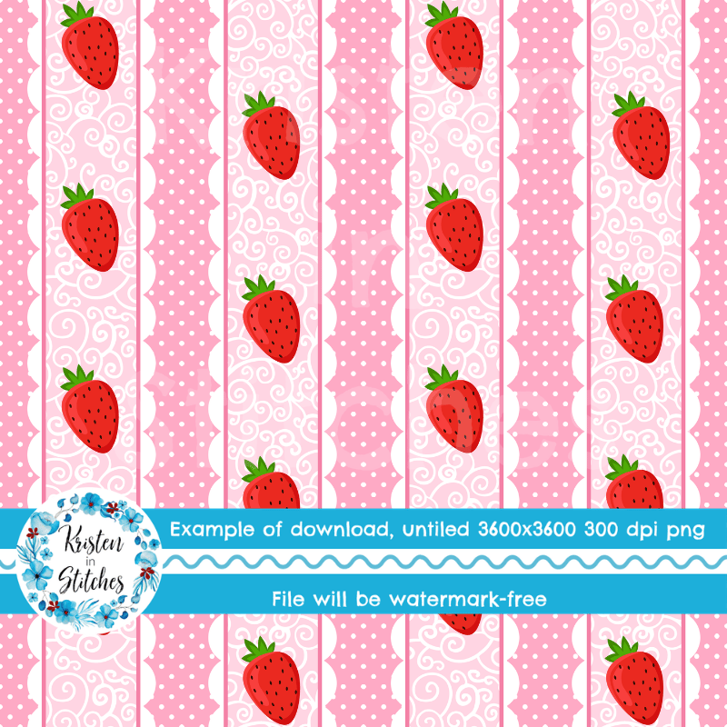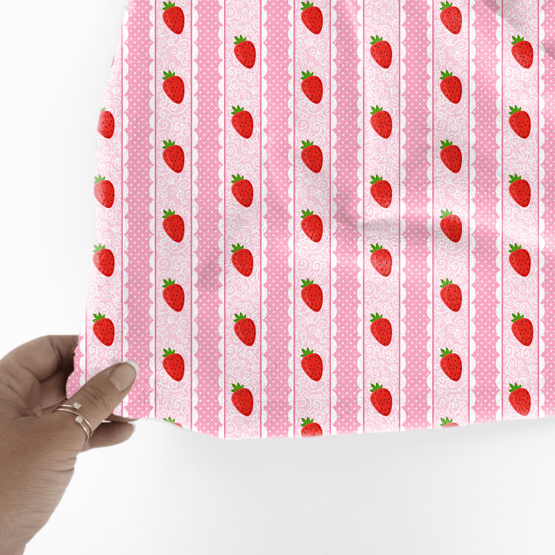 Sweet Lace Strawberry Stripes Seamless Pattern, Red and Pink