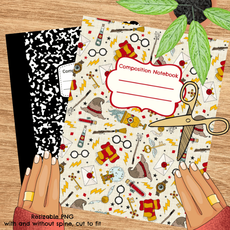 Composition Notebook Cover, Printable Resizable PNG, PDF, Wizard Magic School House