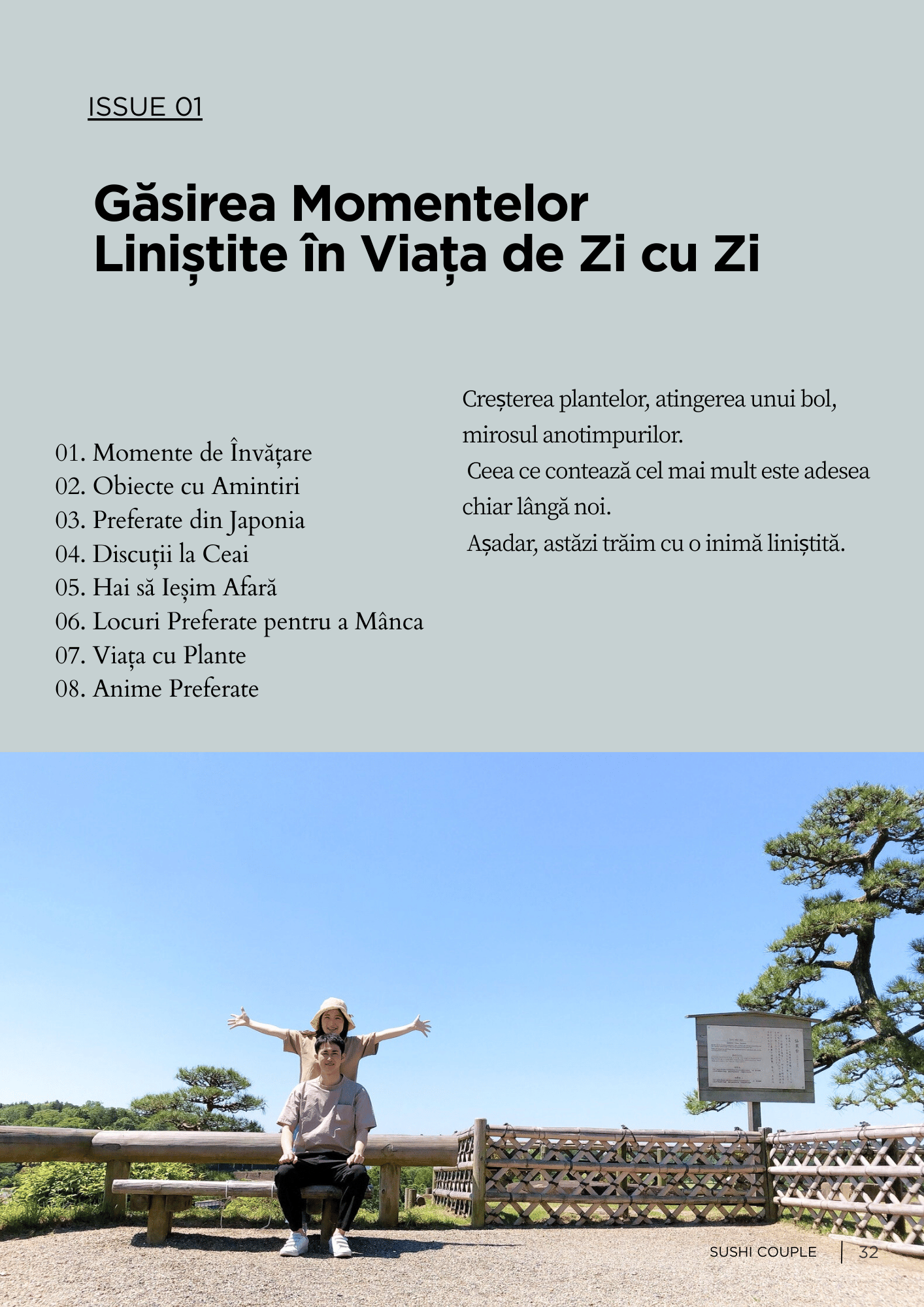 Pe lângă instrucțiunile pas cu pas, cartea include și coloane despre prepararea orezului, dashi japonez și sosuri de casă, precum și eseuri bonus despre viața noastră în Japonia—oferindu-i atmosfera unei mici reviste de savurat și dincolo de bucătărie.