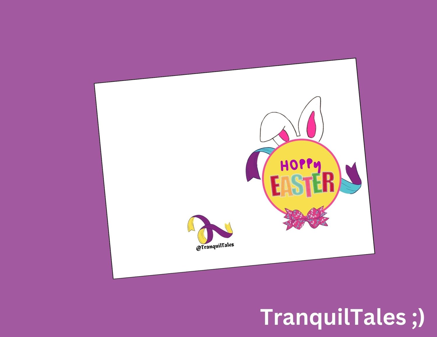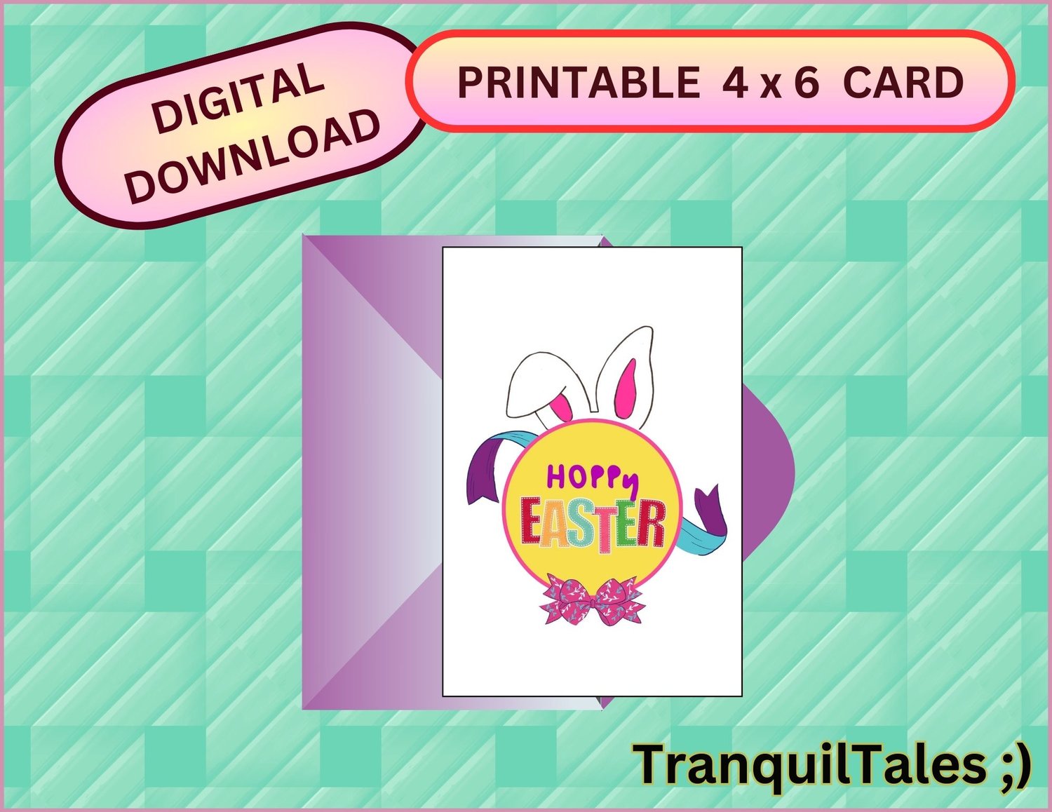 Hoppy Easter - Yellow & Pink Bunnny - Card - 4" x 6" inches - Easter card - PDF File