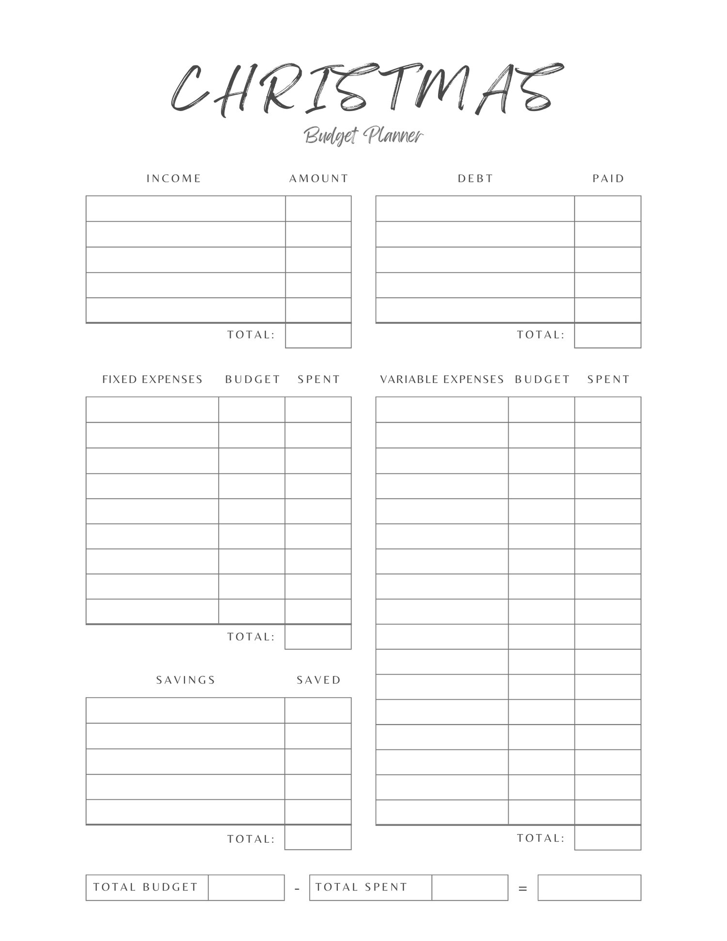 • Christmas Budget Planner