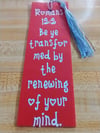 Red Leather bookmark with Romans 12: 2 Bible Verse.