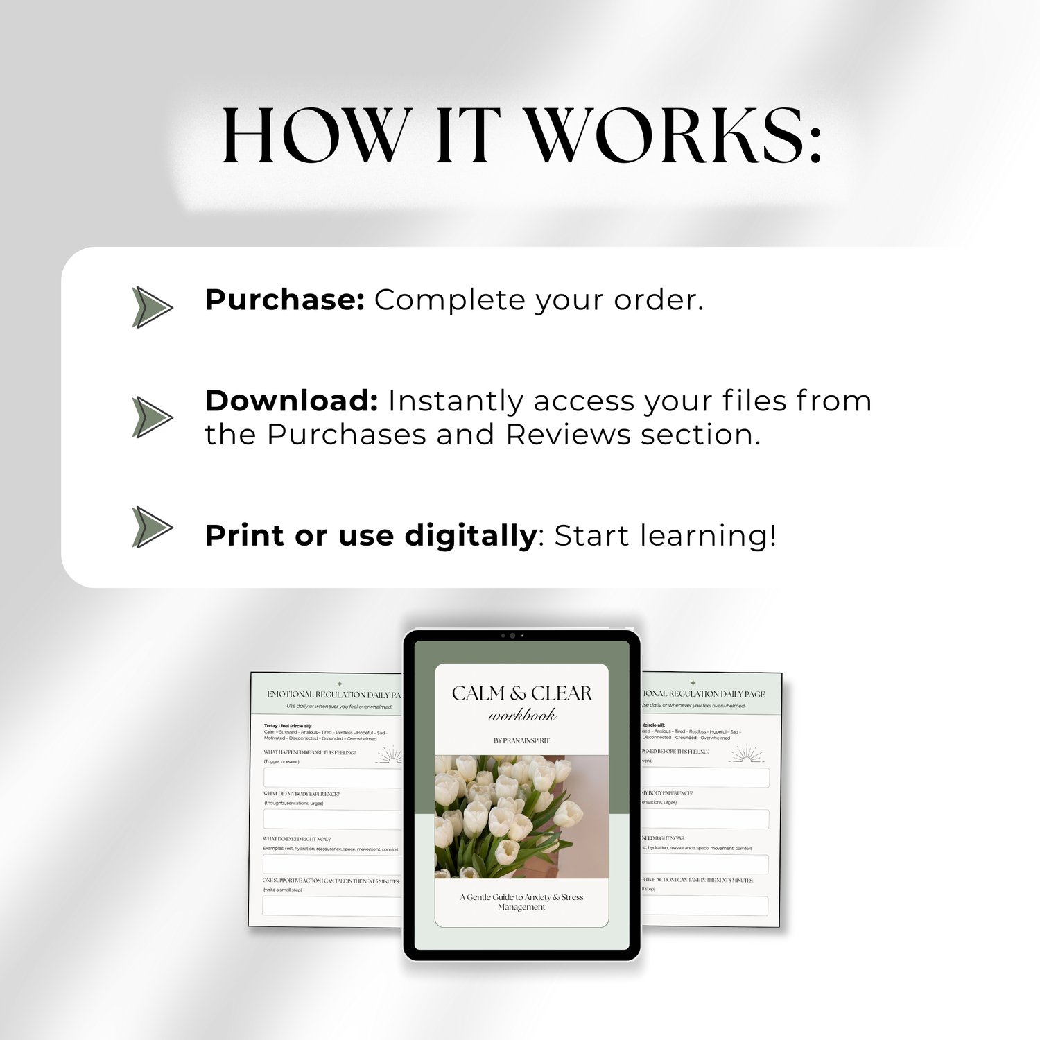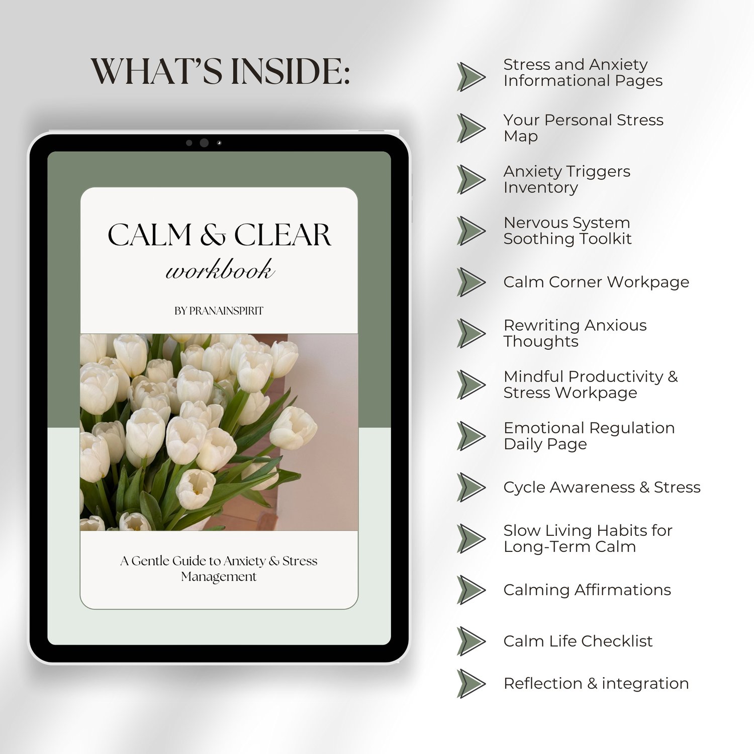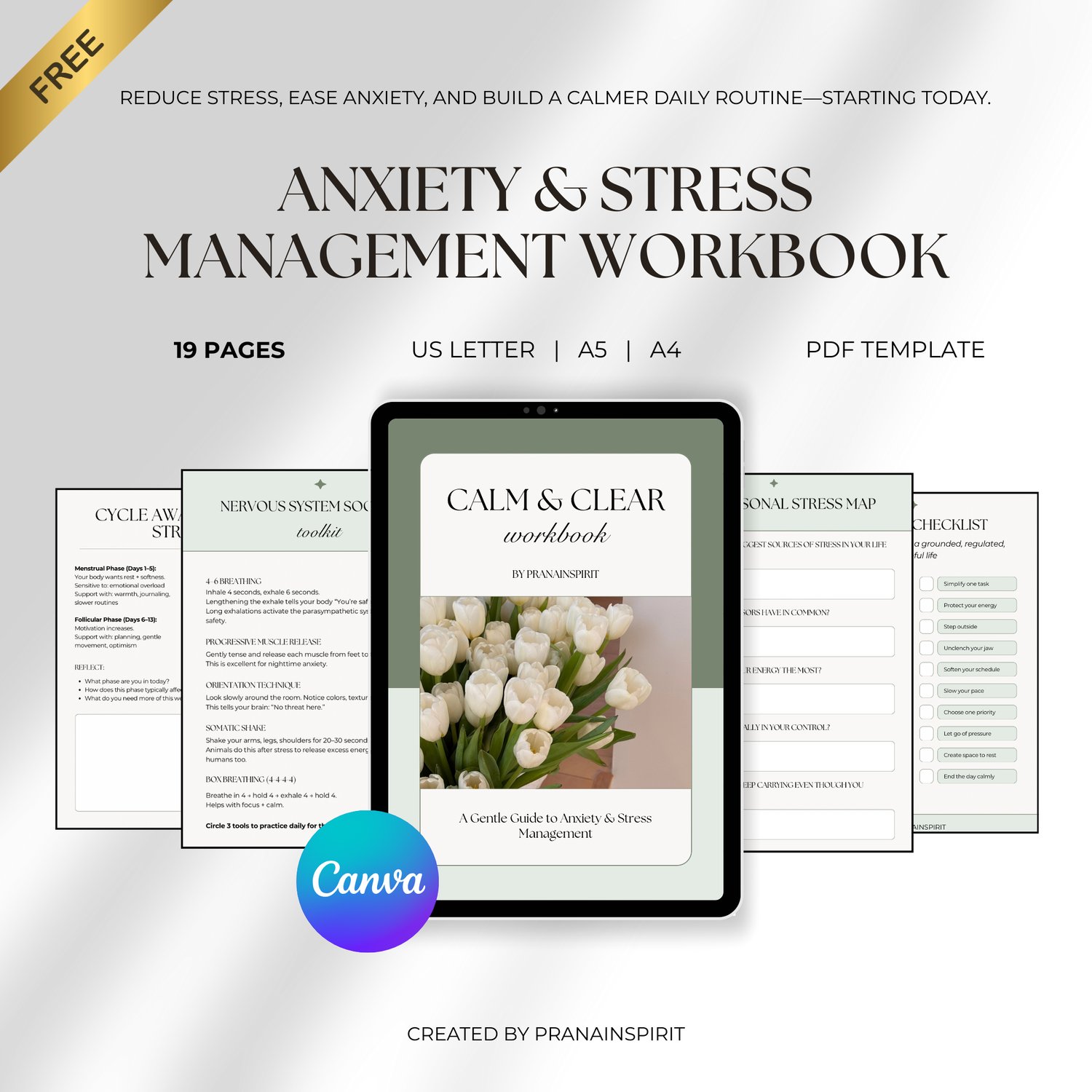 Anxiety & Stress Management Workbook: Calm & Clear, Printable template, Anxiety Journal, Anxiety Management Workbook, Stress Management Workbook/Guide, Mental Health Journal