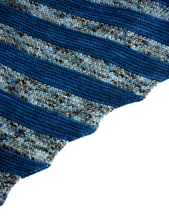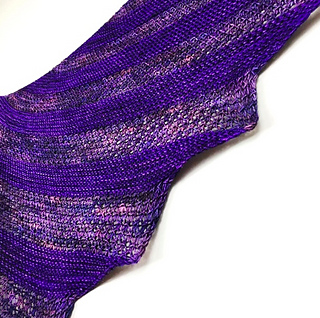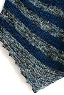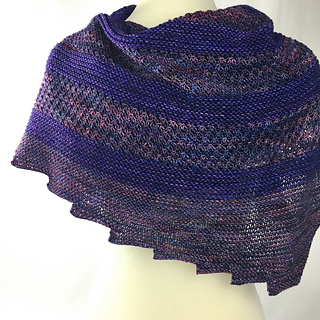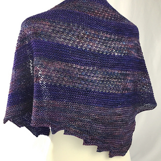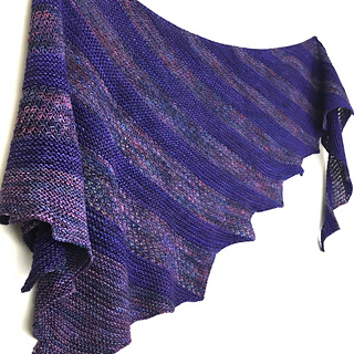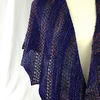 Mick Jagged is a boomerang shawl done in a simple garter and a pretty purl yarn over stitch that works well on variegated yarn. This section grows by 2 rows each time. The jagged edges happen on their own, like magic! Final measurements are 72” long by 20” deep, plenty long for a wrap around.