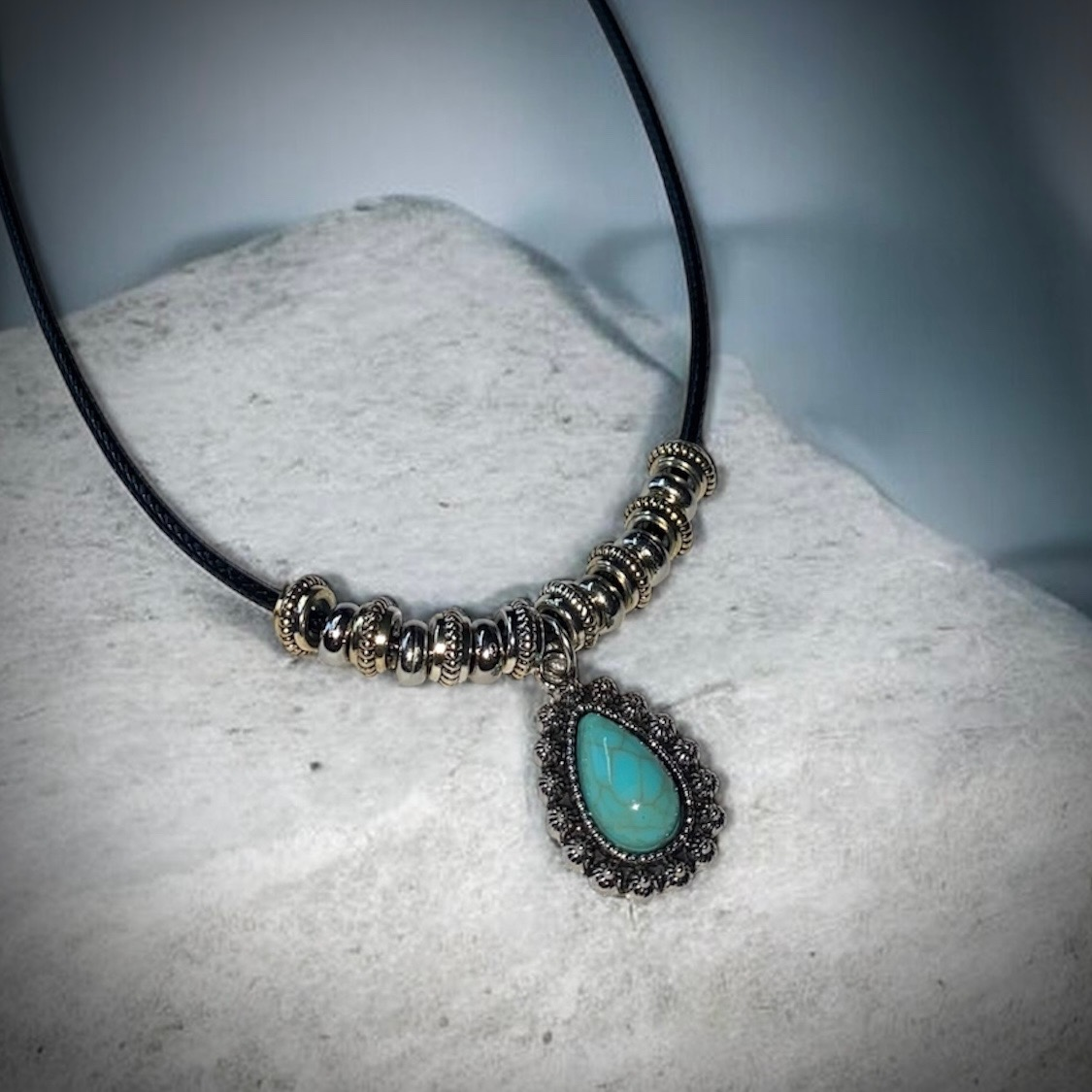 Turquoise Teardrop Necklace – Handmade Boho Southwestern Jewelry