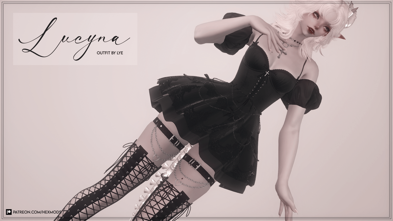 A short goth dress with chains + fishnet panties with thighbelts and some more chains.