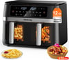 Dual Basket & Large Capacity: Two independent 6-quart baskets allow cooking two different dishes simultaneously without mixing flavors. Perfect for family meals, parties, or meal prep, saving time and effort.