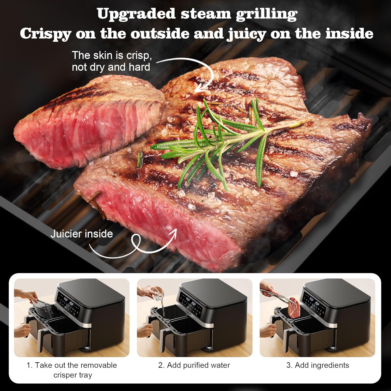 Healthy & Fast Cooking: High-power, oil-free technology cooks food evenly with up to 80% less fat than traditional frying. Wide temperature range from 160°F–400°F lets you dehydrate, sear, or crisp with precision.