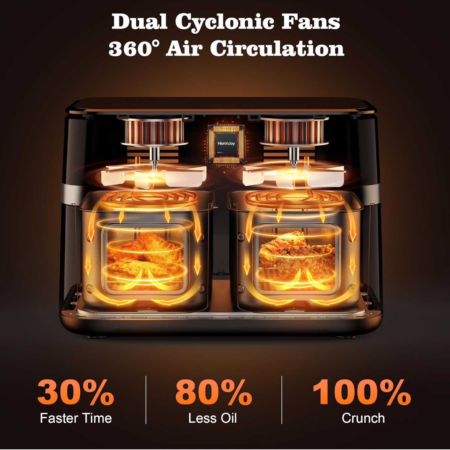 HoninJoy 12QT Dual Basket Air Fryer – 10-in-1 Digital Touchscreen, Large Capacity, Nonstick & Dishwasher Safe