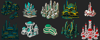 Each icon was designed to serve distinct purpose on your map, while still maintaining stylistic unity across an entire set. With detailed, carefully balanced linework and thoughtfully chosen color palettes icons scale exceptionally well and remain distinct even at reduced sizes for regional overviews. The set contains two versions of every icon: a fully colored natural version, ready to place directly, and an indexed custom-color version optimized specifically for Wonderdraft, ensuring you can effortlessly adjust the symbols to match your map’s aesthetics.