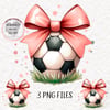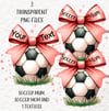 Soccer ball, football. 1 textless, 1 ‘Soccer Mum’, 1 ‘Soccer Mom’. pink bow. 3 high quality transparent PNG files. Sublimation, print, DTF Etc