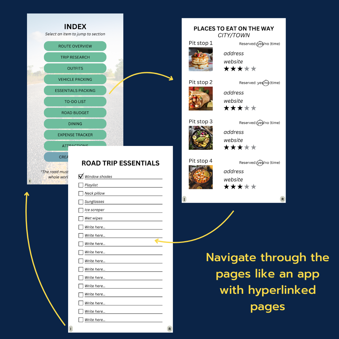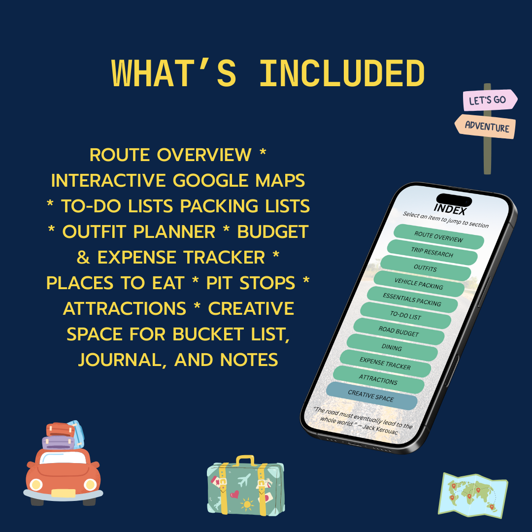 This 30+ page editable Canva road trip planner helps your family get organized, stay on budget, and capture every moment. Whether you're heading to national parks, small towns, or coastal highways, this planner makes prepping your trip easy and actually fun.