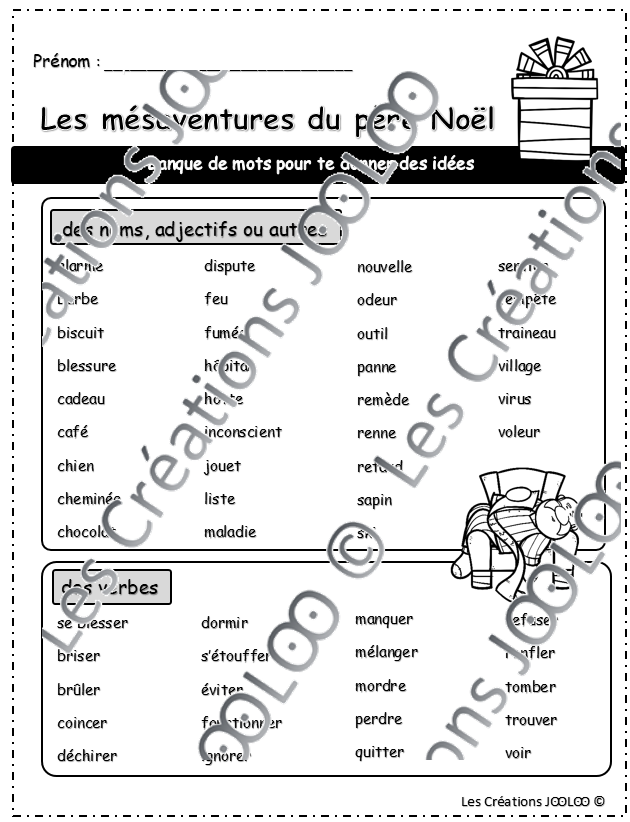 - 1 feuille banque de mots pour l'aider à composer ses phrases
