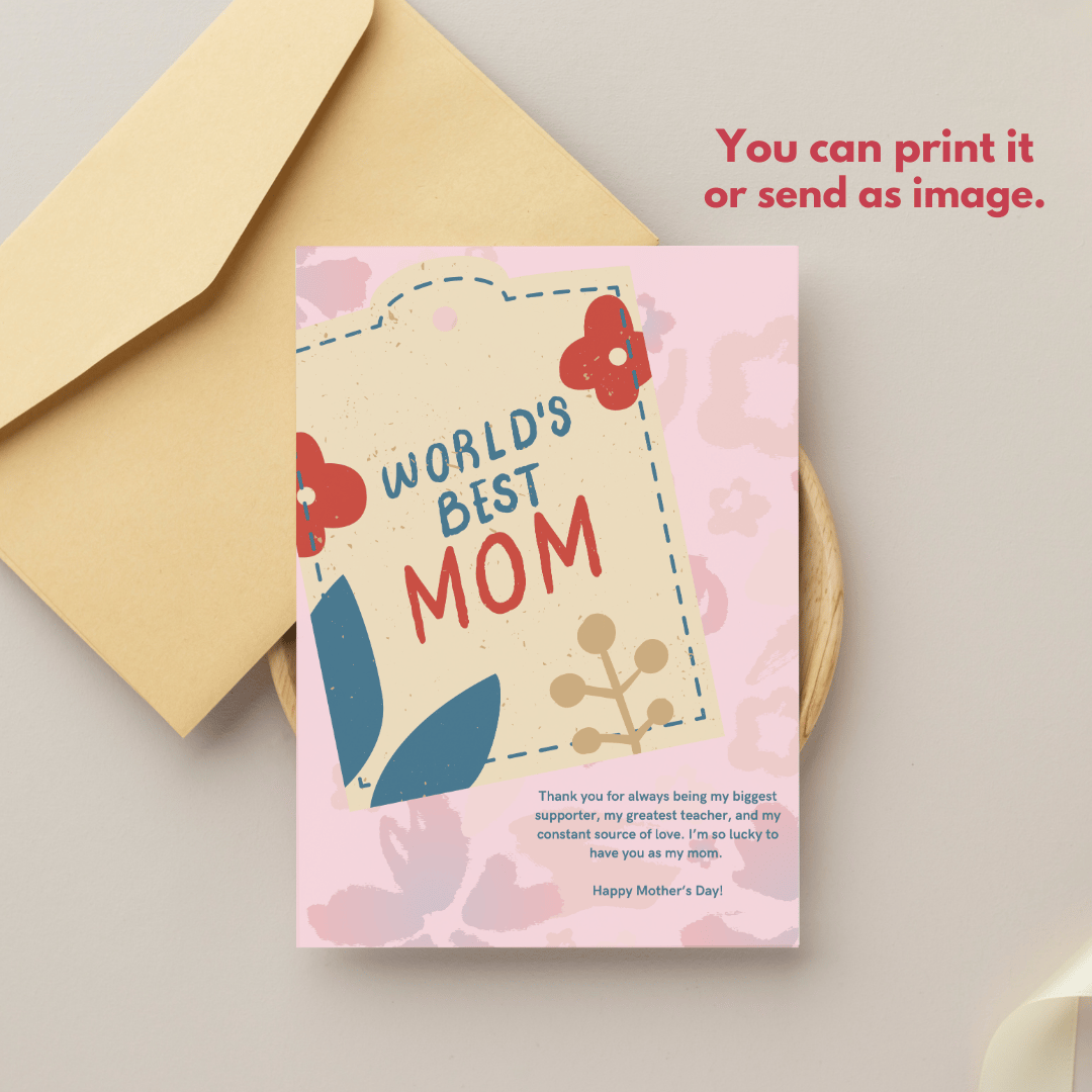 [FREE] Cute Cartoon World's Best Mom Card Editable Canva Design Template