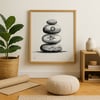 Zen Stone Balance – Japanese Sumi-e Ink Art Print (Minimalist Wall Decor, Digital Download)