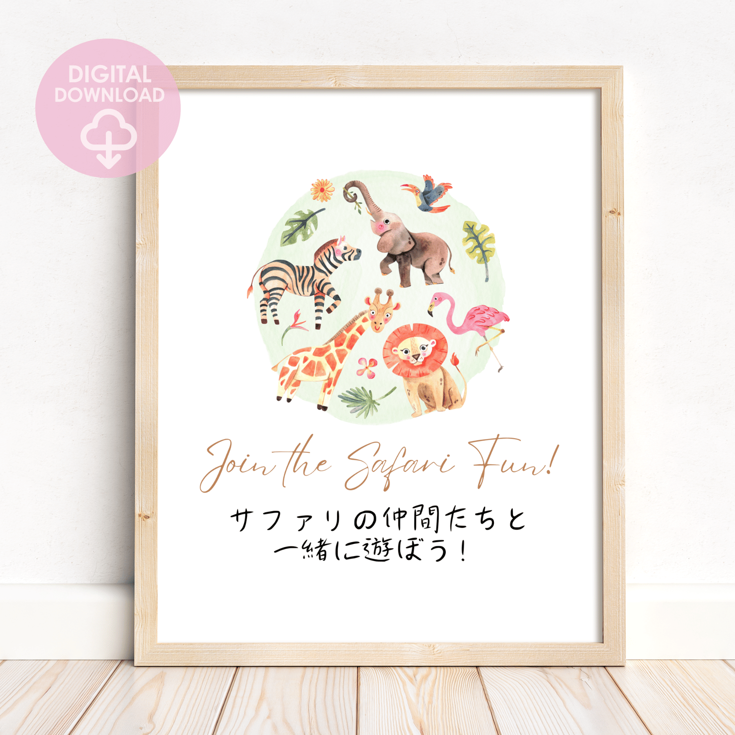 Printable Jungle Safari Animals Nursery Decor, Japanese Quote Wall Art