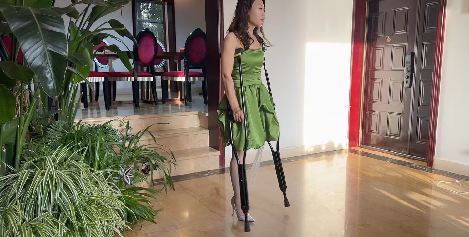Although she is used to walking with crutches