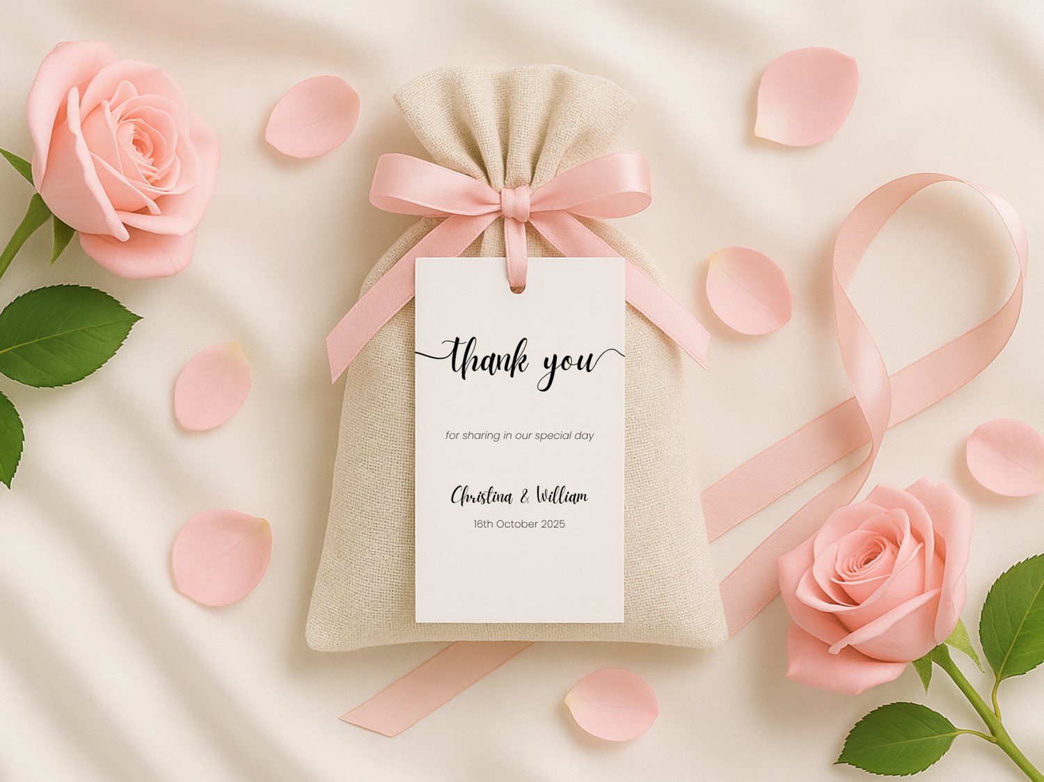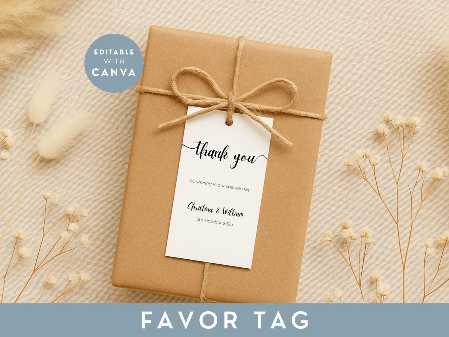 Minimalist Wedding Thank You Tag Template For Favor Editable Canva Printable Stationery Tag Personalized Wedding Card For Guest Gift 002