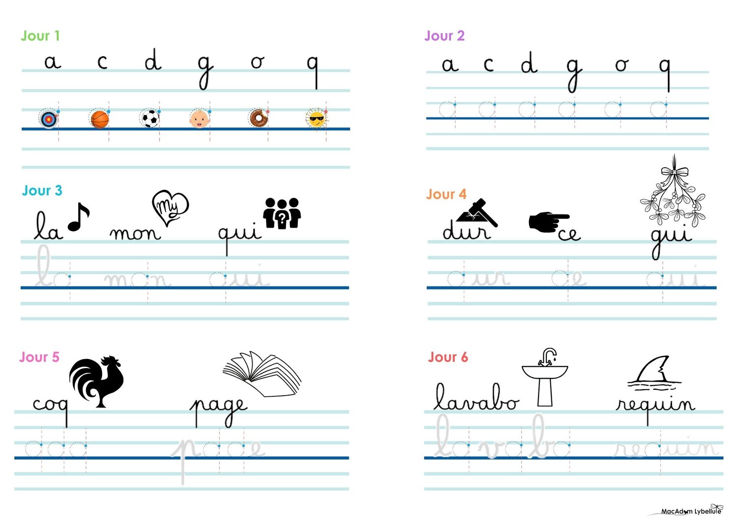 Cet exercice est très efficace pour expliquer de façon visuelle... presque géométrique... comment orienter les oves des lettres rondes pour éviter les lettres en forme de goutte ou les oves crénelées...