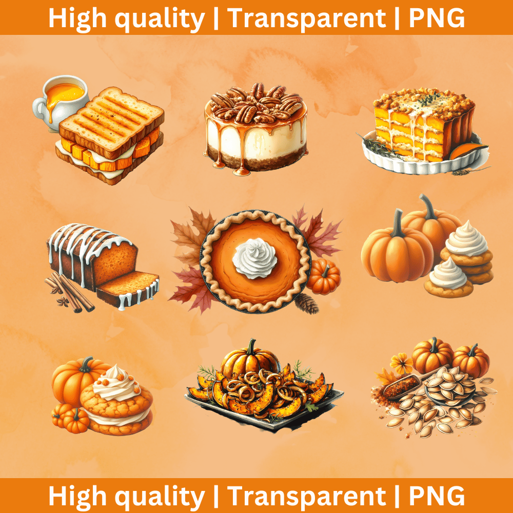 20 Watercolor Autumn Dishes PNG Clipart Bundle