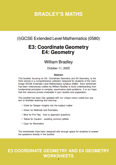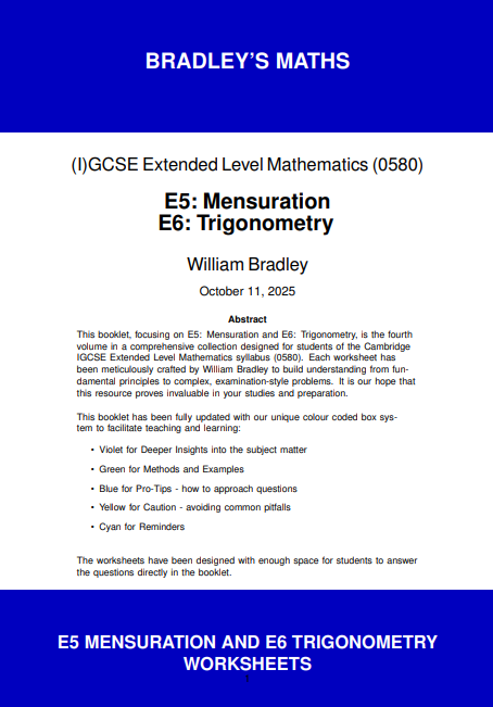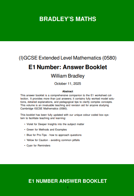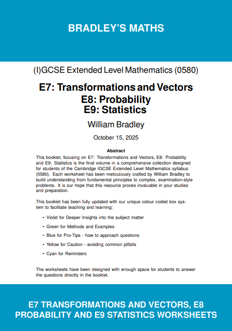 Get the complete set of Bradley's Maths resources for the Cambridge IGCSE (0580) syllabus in one easy download. This bundle contains all 5 Course Booklets (Number, Algebra, Geometry, Probability, and Statistics) and their corresponding Answer Books.