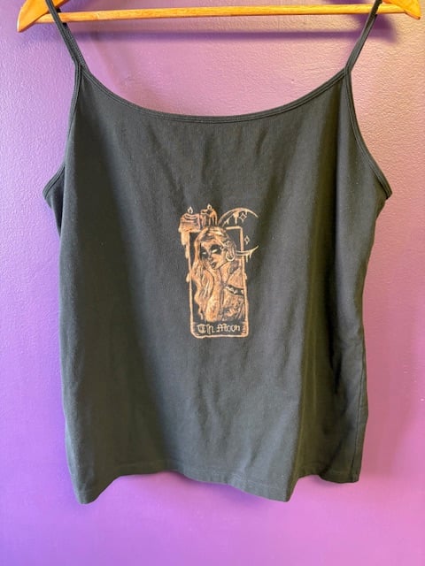 Soft shadows and lunar magic collide in this hand-bleached cami, featuring an ethereal tarot-inspired design. The Oh Moon tank is a nod to mystery, intuition, and the wild feminine—perfect for nights when you feel like casting a spell or just making an entrance.