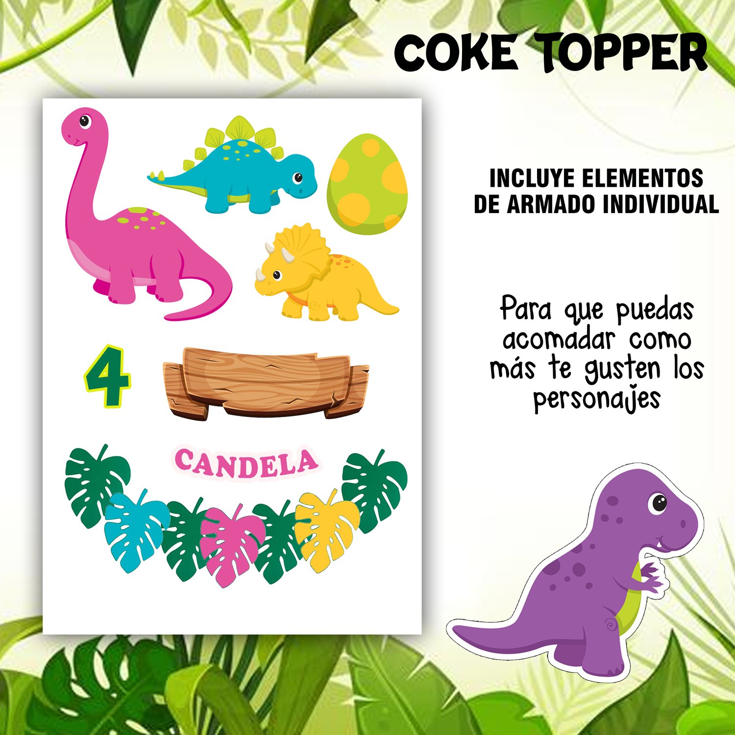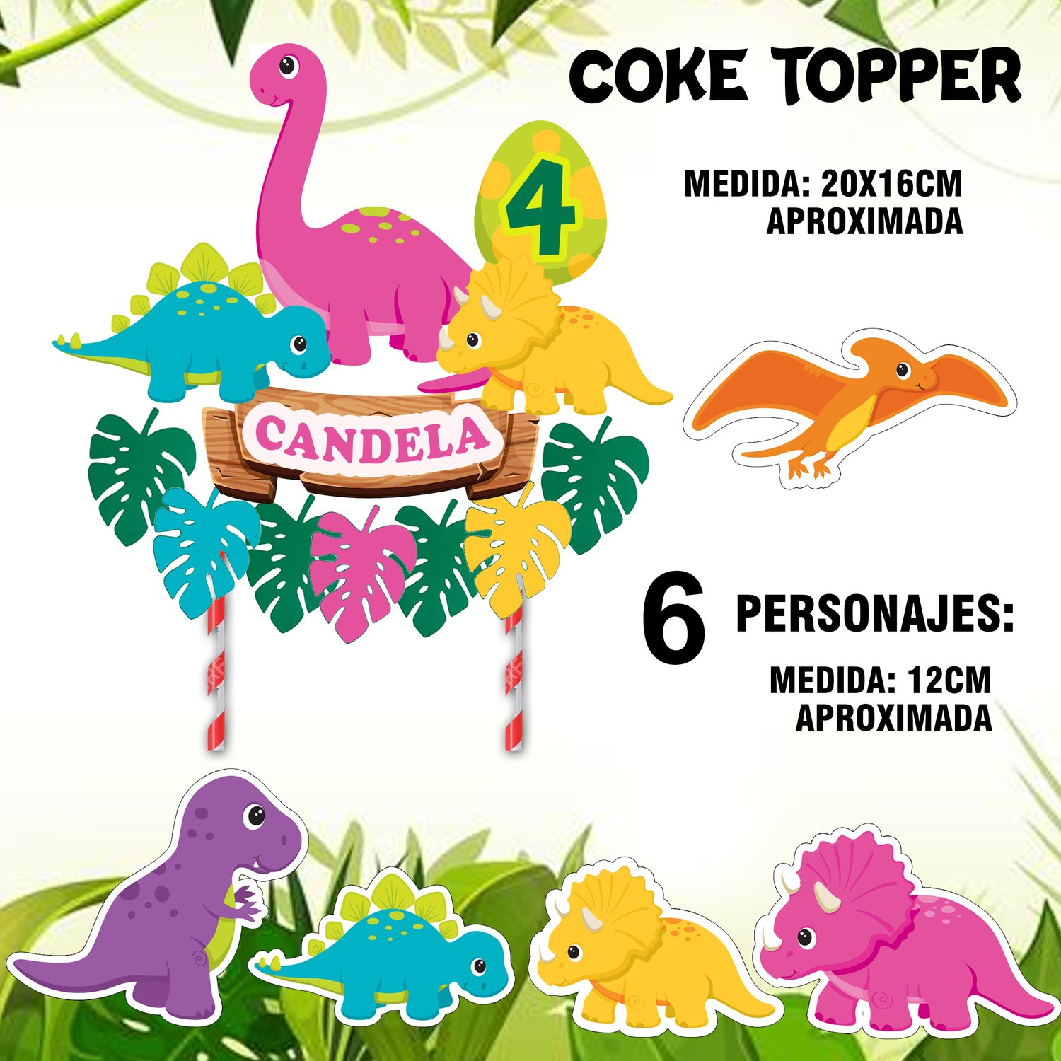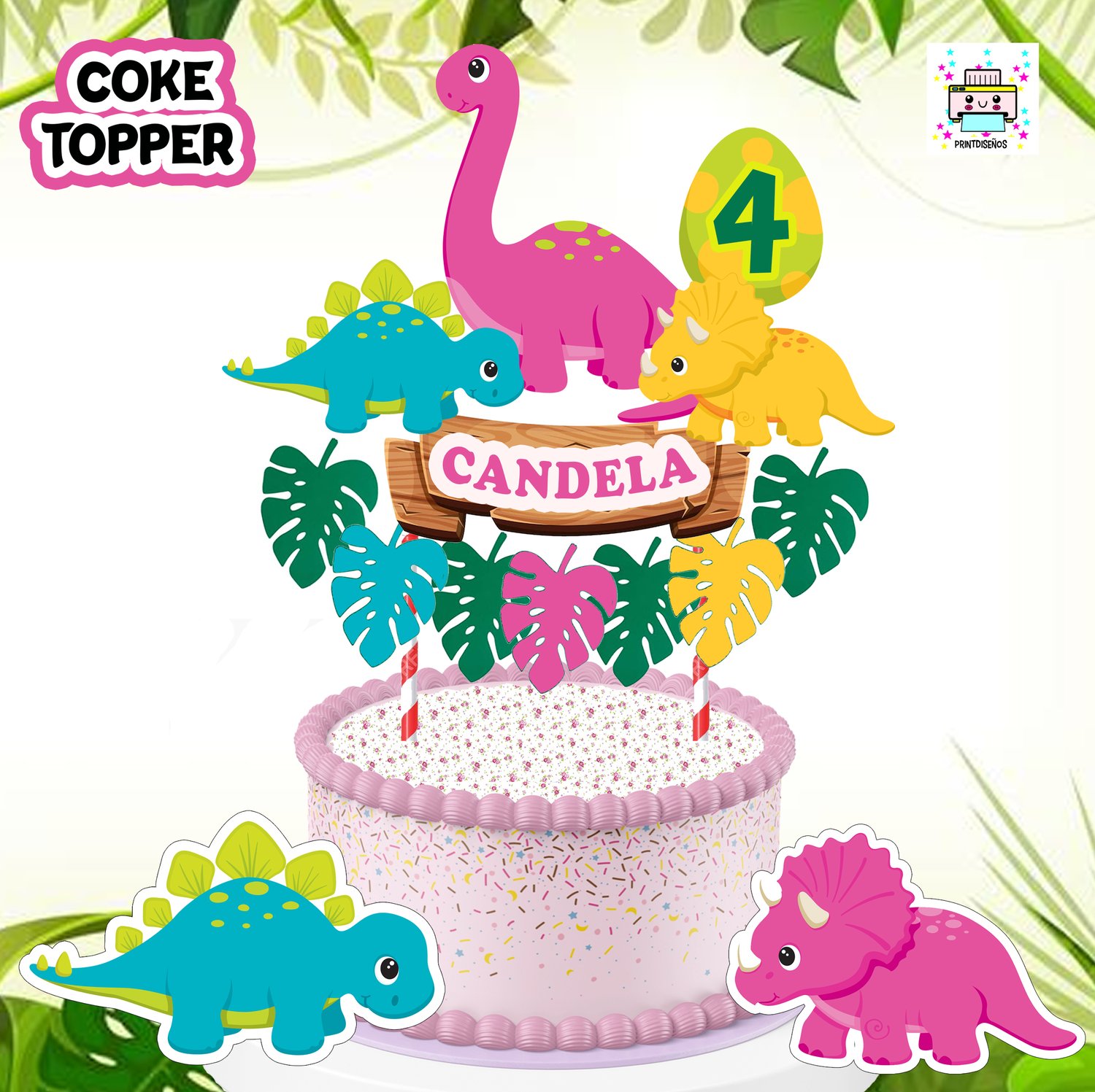 Kit Imprimible Cake Topper Adorno Torta Dinosaurios Niña