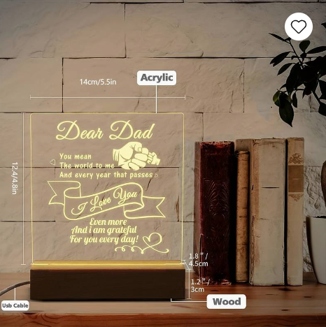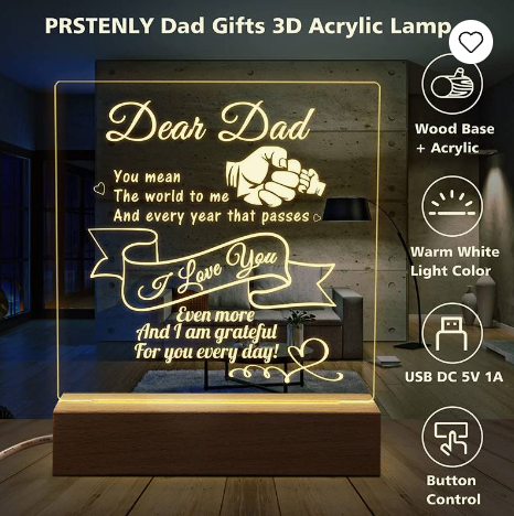 1pc 3D Acrylic Lamp /Engraved Night Lamp With Wood Base, Dad Night Light, Gifts For My Dad