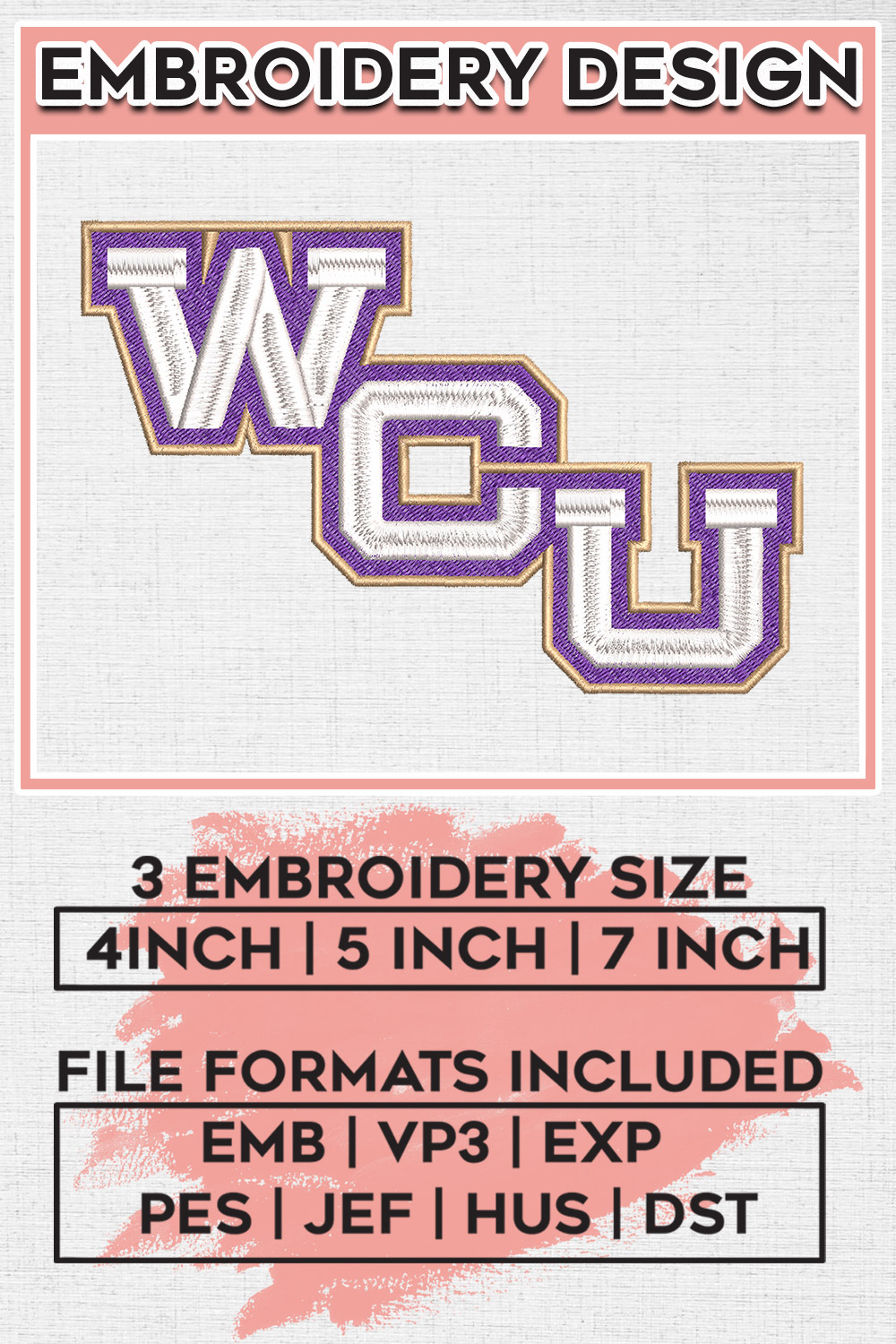NCAA WCU Football Team Logo Embroidery Files, NCAA Western Carolina Catamounts Team Embroidery, NCAA College Football Teams, Western Carolina Team Emroidery, 3 sizes, Machine embroidery designs, Digital Download