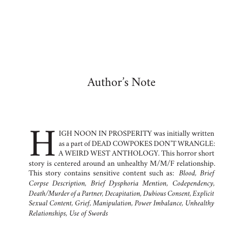 This is a 6.3k horror/weird west/fantasy short story featuring an M/M/F relationship.
