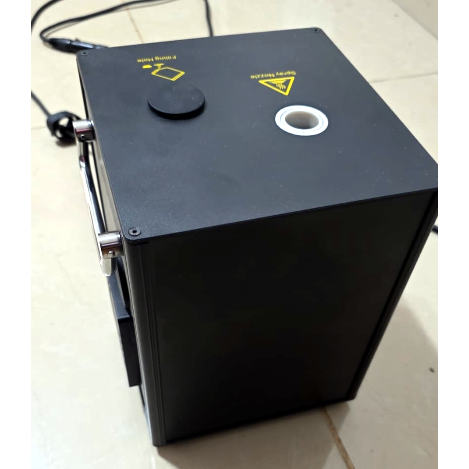 * La carga es polvo de Titanio. Recomiendan colocar estos equipos lejos de las consolas de sonido o controladores de DJ porque las partículas de óxido que tira se meten en las ranuras de los Faders y hacen desastre.