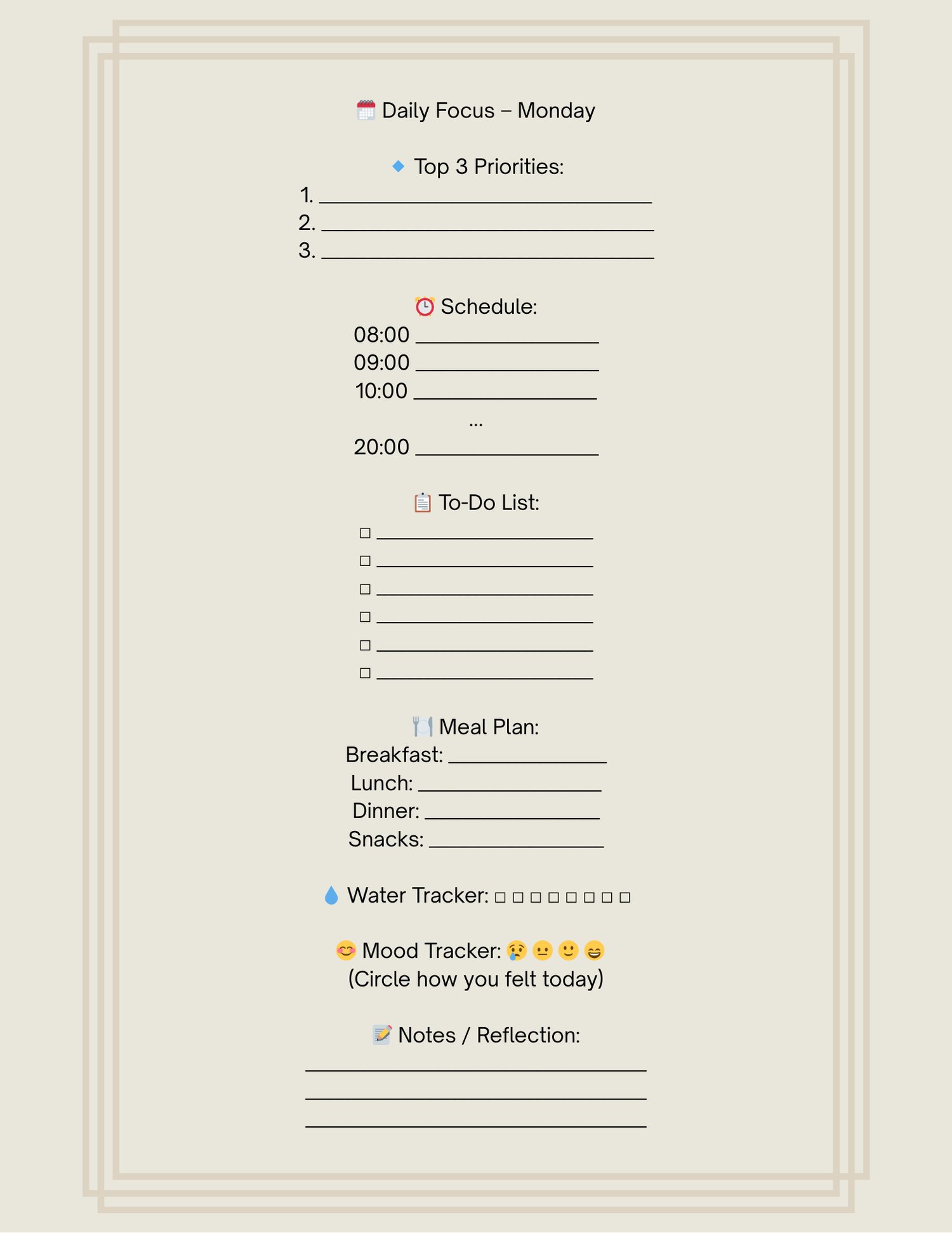 ✔️ Clean, minimal design for easy printing and writing.