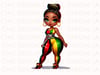 Curvy Sporty Juneteenth Black American Chibi Woman Transparent PNG Design| Juneteenth Clipart Designs| African American Prints, African American Holidays| PNG Sublimation Designs