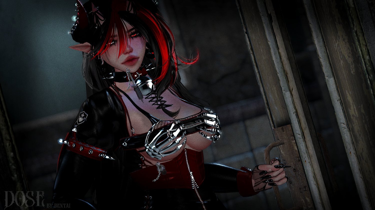 Head & Body & Eye - Akira, Zinpia, Ezra.mp3 | Kini- Thiccwitch | Main Outfit(Dress,top,hat,wings Corset)- Vinuzhka | Horns & Tail - Nessy & Daddyissuez | Knee &Ankle Heel, Thigh Highs/Sleeves,Sleeves, Belts, Bone Hand - Nessy | Back Needle & Small ones - Sebs, MilkyMutt | Blindfold - MilkyMutt |Collar & Cig - nyaowoh | Hair Tex - cicieaaavr & naku | Hair 1 & 2, 3, Bangs - Nessy, Saikura |