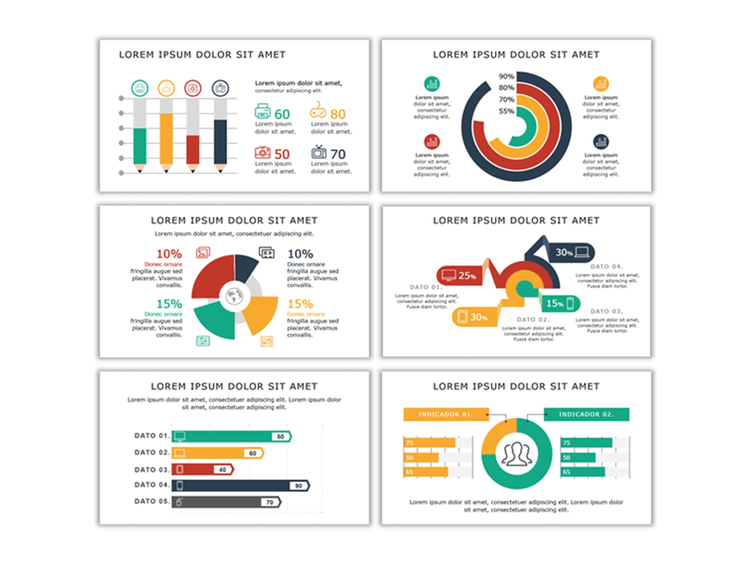 Pack con más de 400 plantillas de diseño único (más variaciones de colores) y elementos gráficos para sorprender a tu público con un diseño creativo y fácil de comprender.