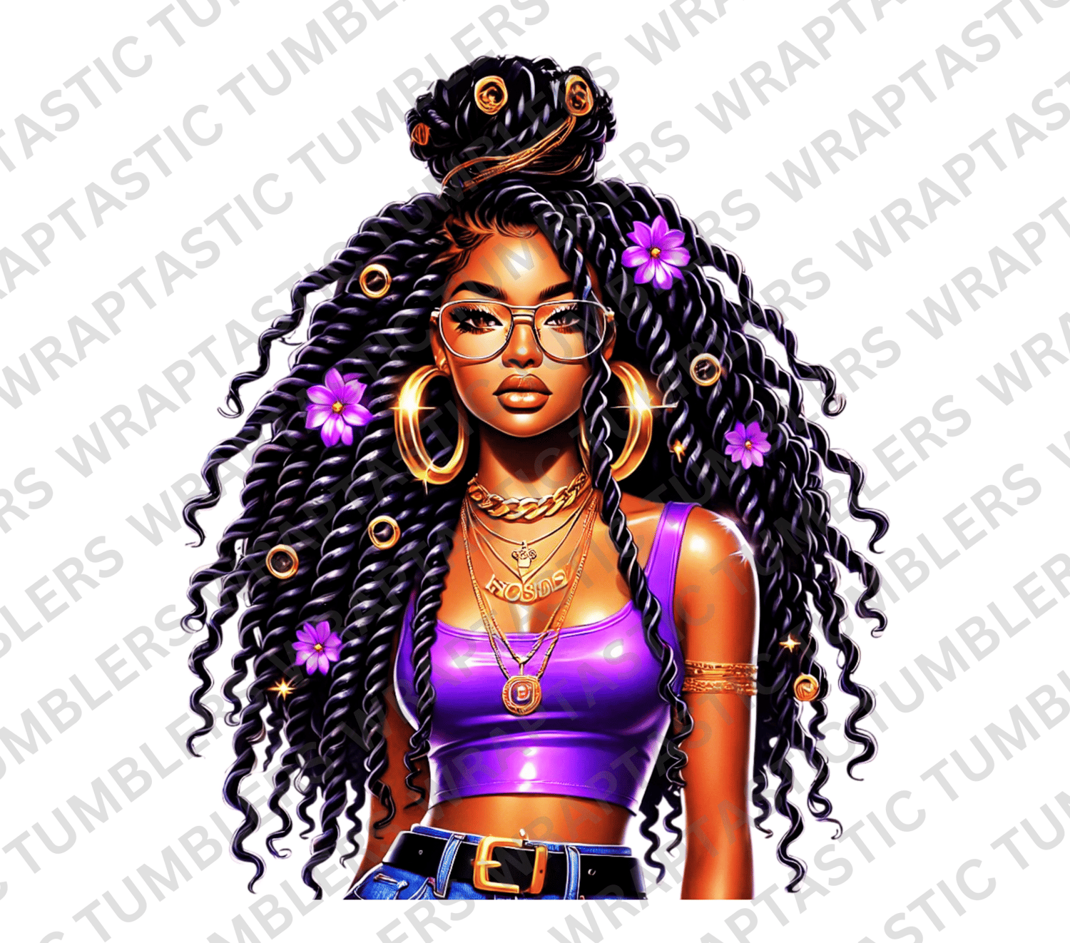 This trendy Black girl PNG is perfect for sublimation on tumblers, mugs, shirts, and more. A bold, stylish Afrocentric digital design ideal for crafters, small businesses, and fashion-forward projects. Great for gifts, apparel, home decor, and urban-inspired creations.
