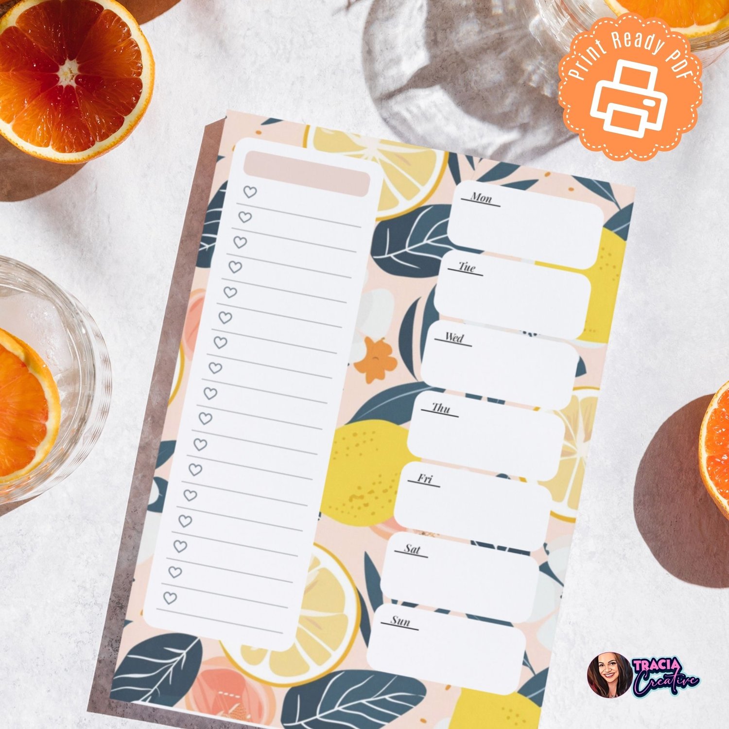 Simply print the notepad pages and use them as standalone sheets or bind them into your planner. Fill in your weekly tasks and enjoy the fresh look that the citrus design brings to your planning process.